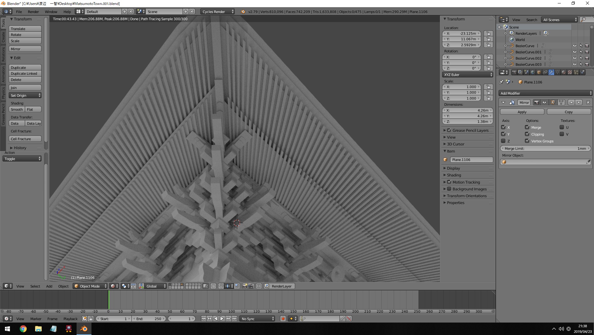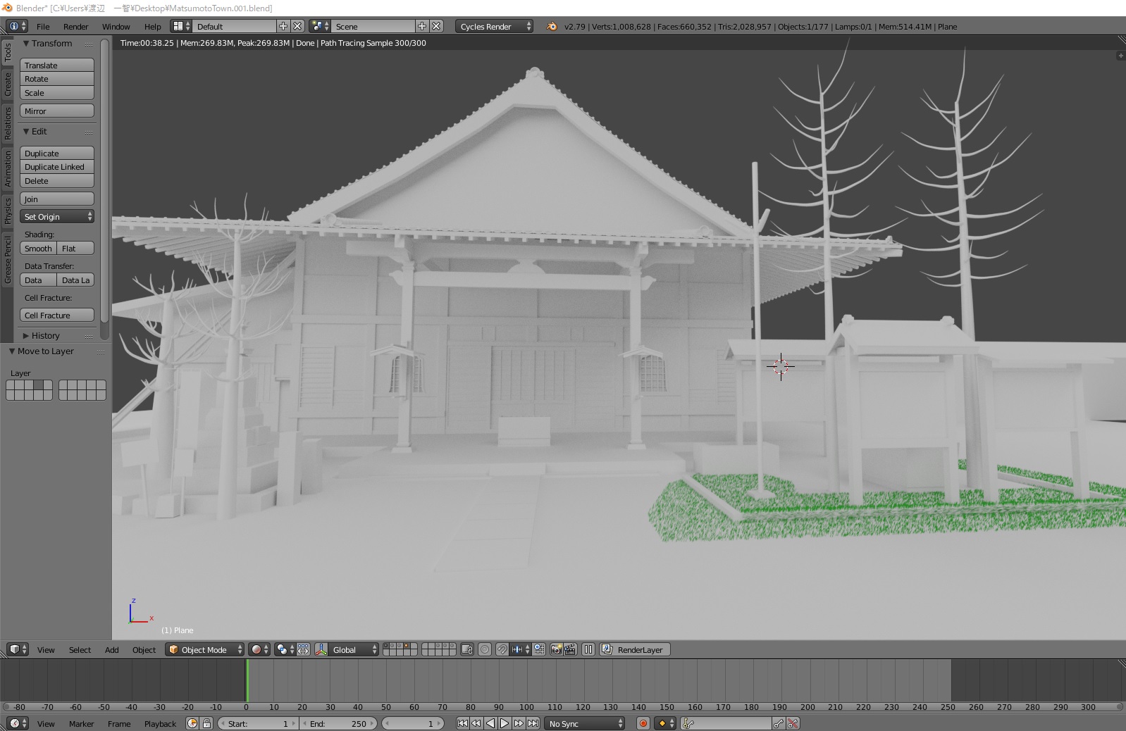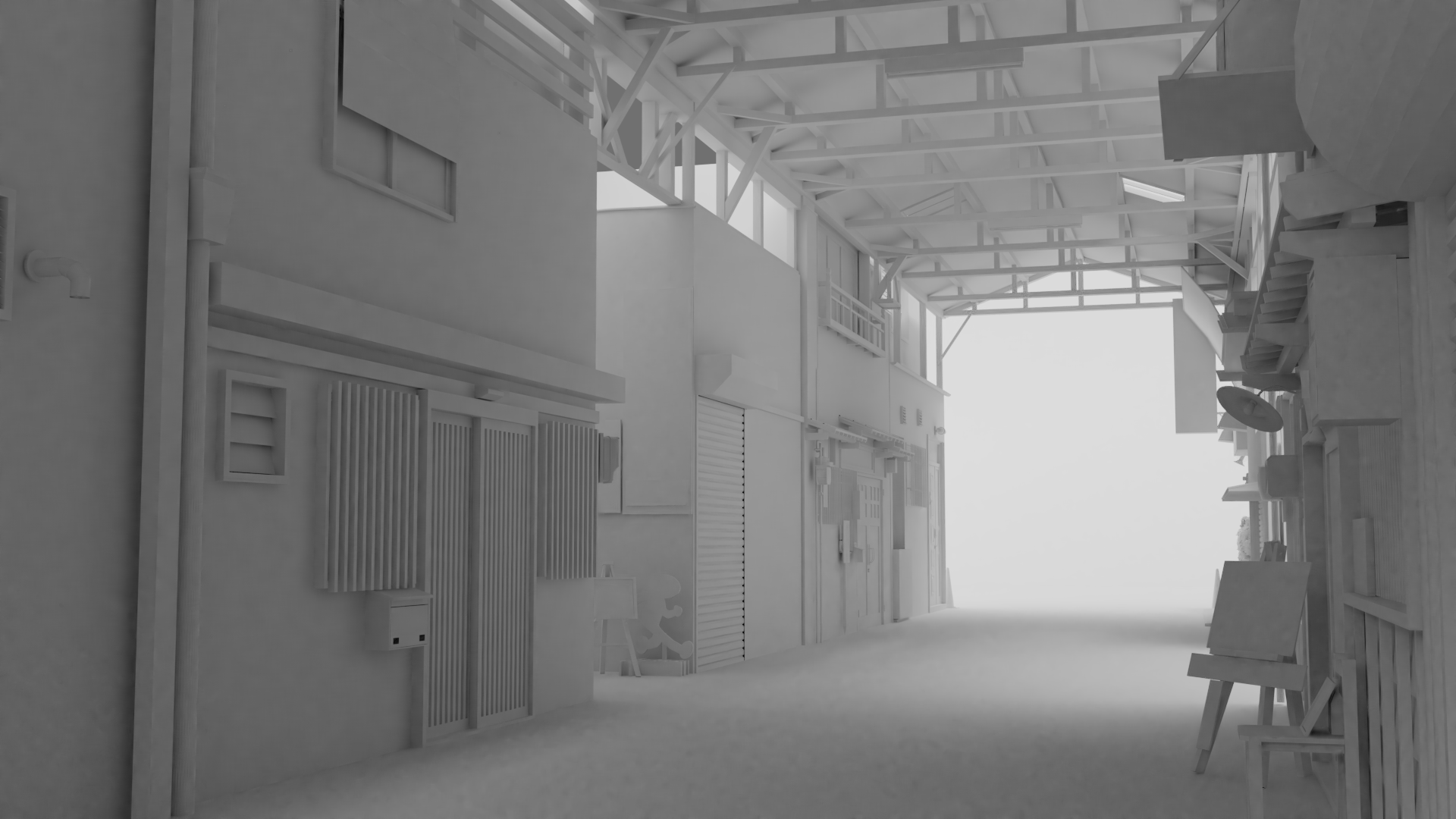 現在制作中の自主制作動画の背景です。今はマテリアル(色や質感など)を設定中です。